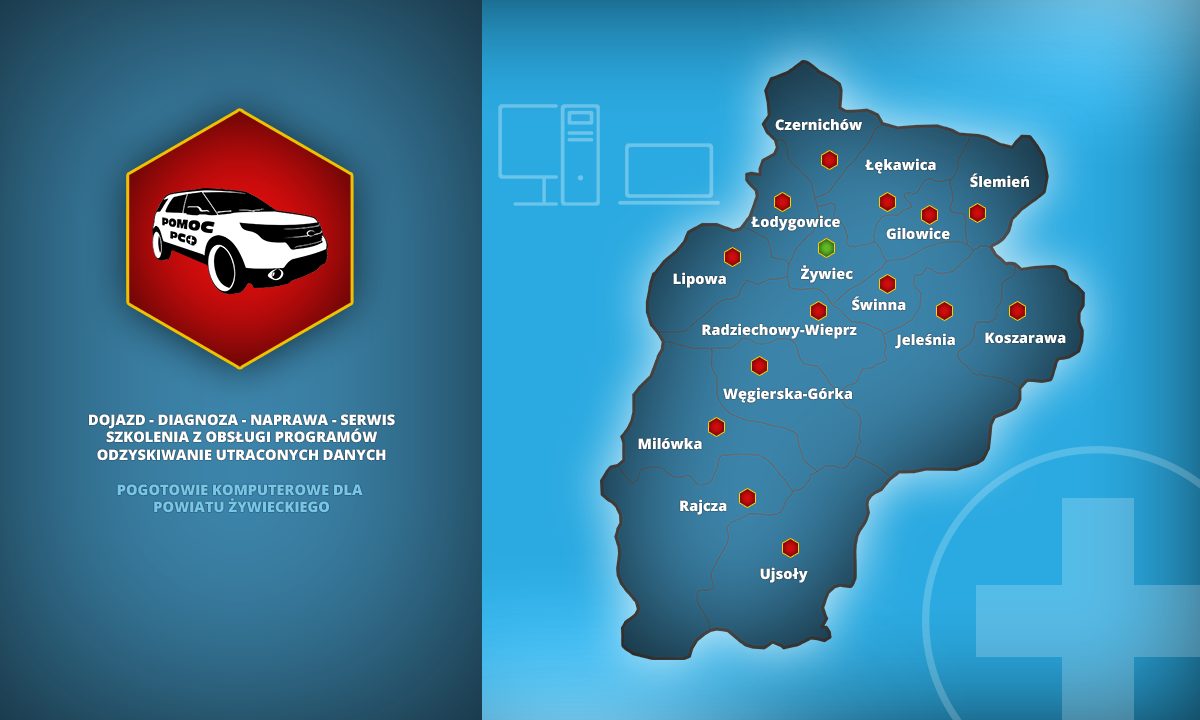 Usługa dostępna jest na terenie miejscowości: Żywiec, Gilowice, Lipowa, Łękawica, Łodygowice, Radziechowy Wieprz, Świnna, Czernichów, Jeleśnia, Koszarawa, Milówka, Ślemień, Węgierska Górka, Rajcza, Ujsoły.